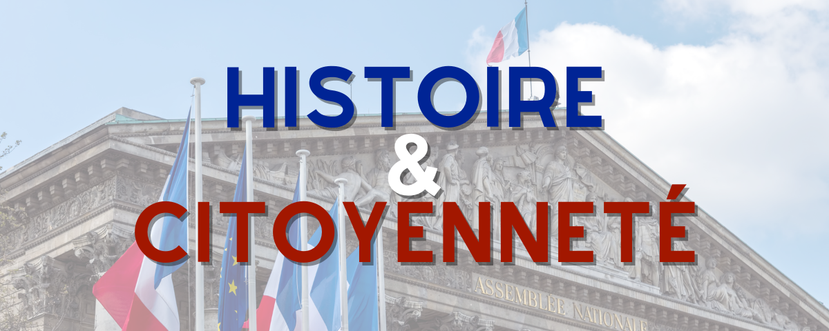 Histoire et Citoyenneté  explore l'histoire de la République Française, de la Revolution a nos jours, son organisation ainsi que les droits et devoirs de ses citoyens. Il evoque également la construction Européenne, ses institutions mais abordera aussi la place de la France dans le Monde. La participation d'intervenants externes permettra d'illustrer les notions enseignées.
